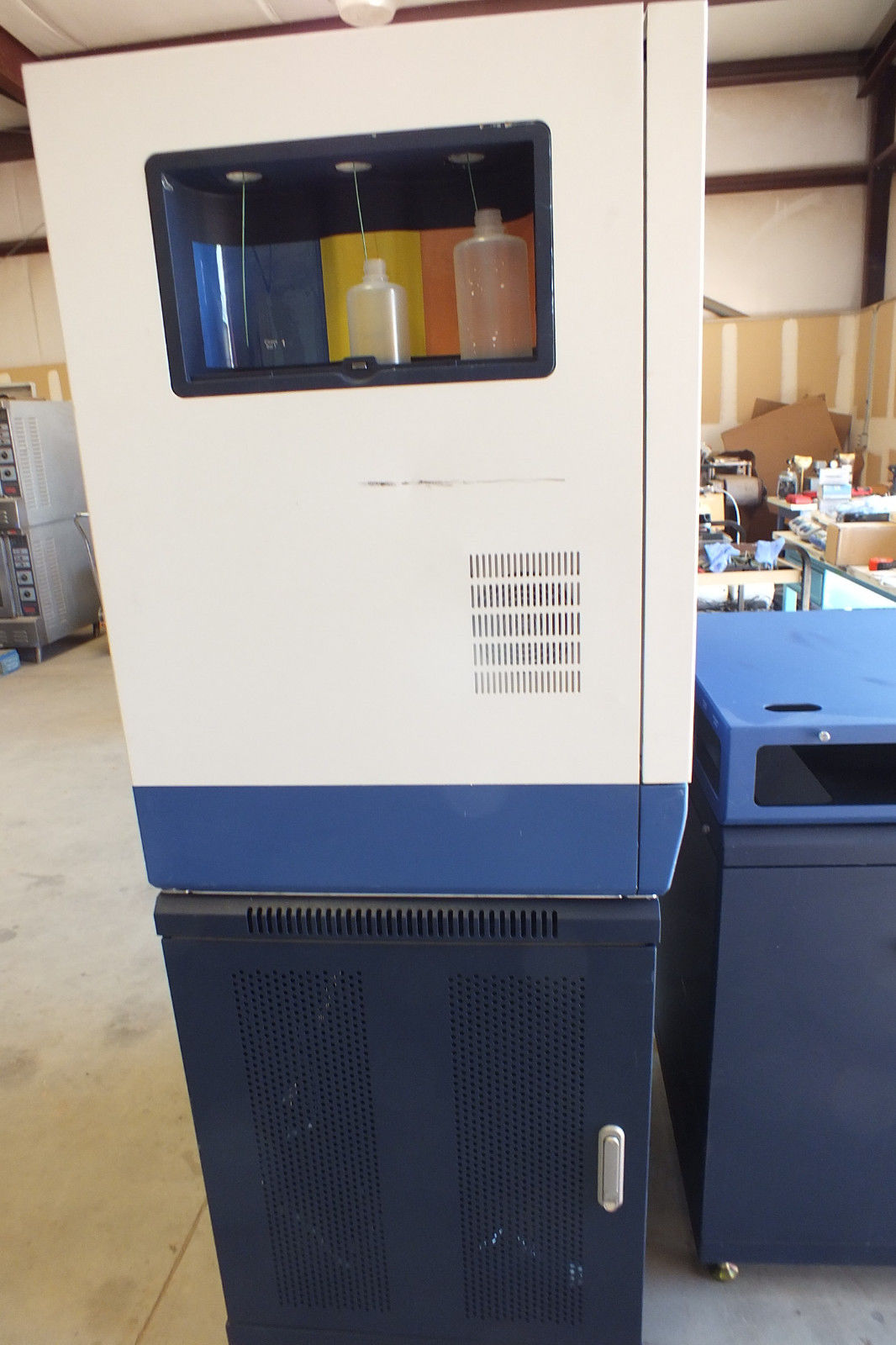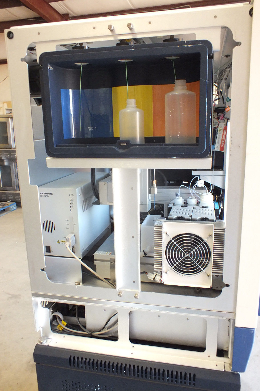It looks like there is an Olympus IX81 microscope without a stage, condensers, or an objective head and an IX2-UCB controller. These are bundled with a Spot Insight 4 firewire camera. The camera itself is probably worth more than these listings have been selling for (~$3750). Teide also reports that the Solid sequencers also include “a complete IAI Tabletop Robot, ready for use”.