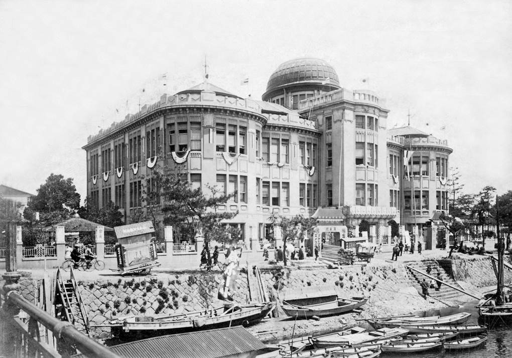 This building was originally built to sell produced goods and therefore was given the name Hiroshima Prefectural Products Exhibition Hall (figure 2). In April of 1915, the Hiroshima Products Trade Fair was held in this building, four months before its opening date. During the fair, the building was lit up every night making the site popular. In 1933, the name of the building was changed to Hiroshima Prefectural Industrial Promotion Hall. However, in 1944, the building came to be used as governmental offices and other control unions due to the intensifying war that demanded more spaces for government decision-making. This led to the cancellation of all commercial purposes of the building. When the bomb was dropped, everyone inside the building died instantly as the building slowly caught fire. The framework that survived would soon be known as the A-Bomb Dome as seen in figure 3.