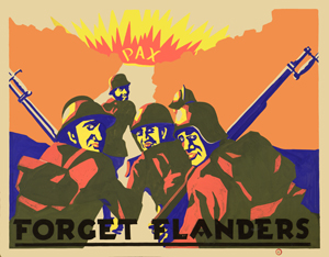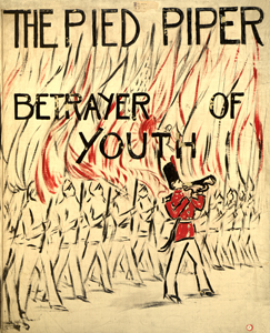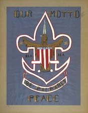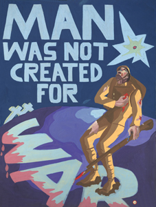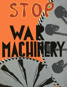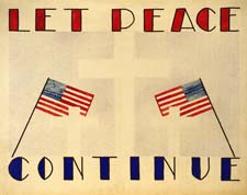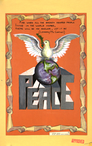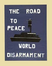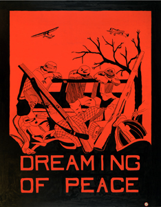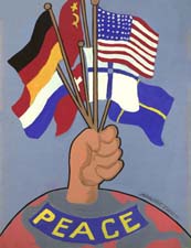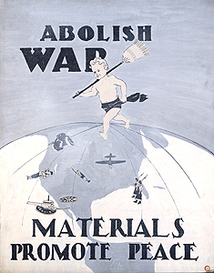 war and violence. These posters are particularly indicitive of their time period as the youth picked up on the prevalent design elements, happenings (such as the No More War demonstrations in Europe), and peace propaganda that prevailed after World War I. A few items in the exhibit were produced between 1976 and 1987, and some are current pieces; these are included here to show children’s continuing hope for peace and their role in causing it to take root. To read more about the two major initatives that sponsored the creation and showing of the artwork, click here.