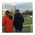 We pull into the home ground of the semi-pro team Swarthmore is facing tonight. This is not Oldham Athletic, whose League One match we attended on Saturday. Oldham *Town* plays in what's known as the Northwest Counties League. The club's pitch is completely enclosed by a fence, as is the norm for English football venues, and it has various standing areas and small grandstands running continuously along the sideline. Altogether, it has room for about 1,500 spectators, I'm told, although nowhere near that many are expected tonight for the friendly with the American college team.