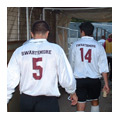Unfortunately, Swarthmore doesn't show these people much in the first half. The skill and talent of the home team is plainly evident when Richard Graham, a former Premiership defender, deposits a header off a beautiful cross. A miscommunication between Swarthmore 'keeper Reuben Heyman-Kantor '06 and the defenders leads to a second goal for the hosts. Another cross-and-header combination produces the third Oldham goal, and it's 3-nil at halftime. After a few attacks in the opening minutes, the Garnet has done almost nothing offensively, seeming to rush passes in a panic under the Oldham pressure.