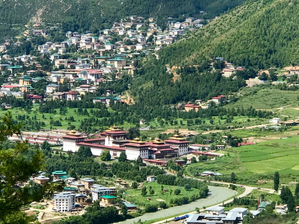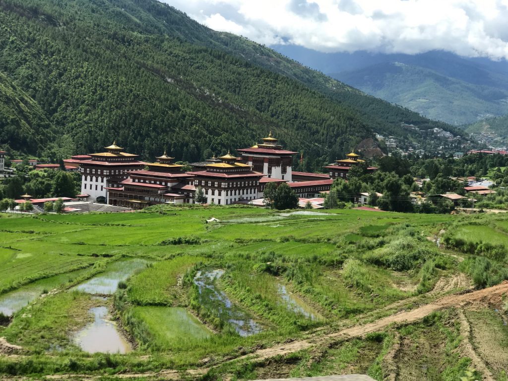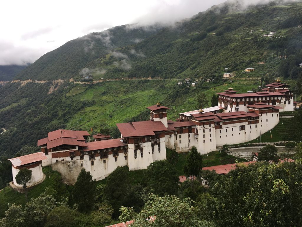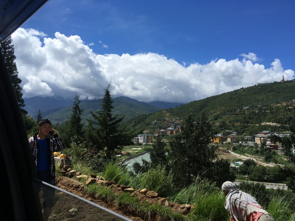 The road to Bumthang winds above the Thimphu dzong and the surrounding rice fields, past Bhutanese on cell phones and Indian workers laboring on infrastructure projects.