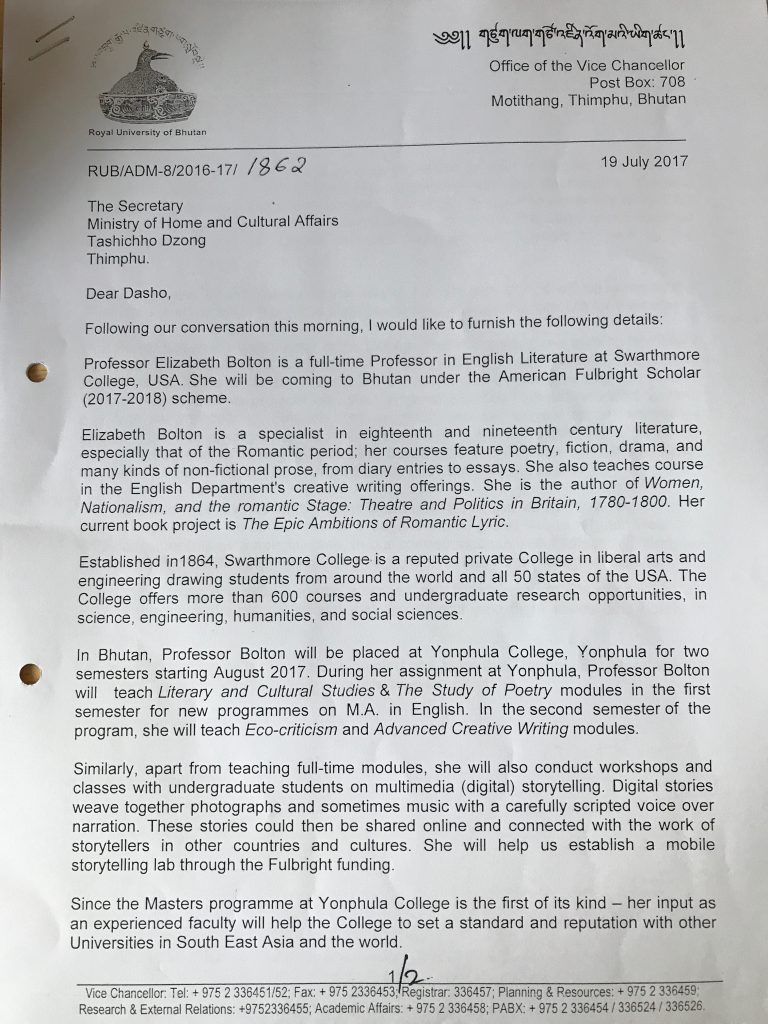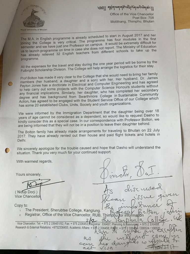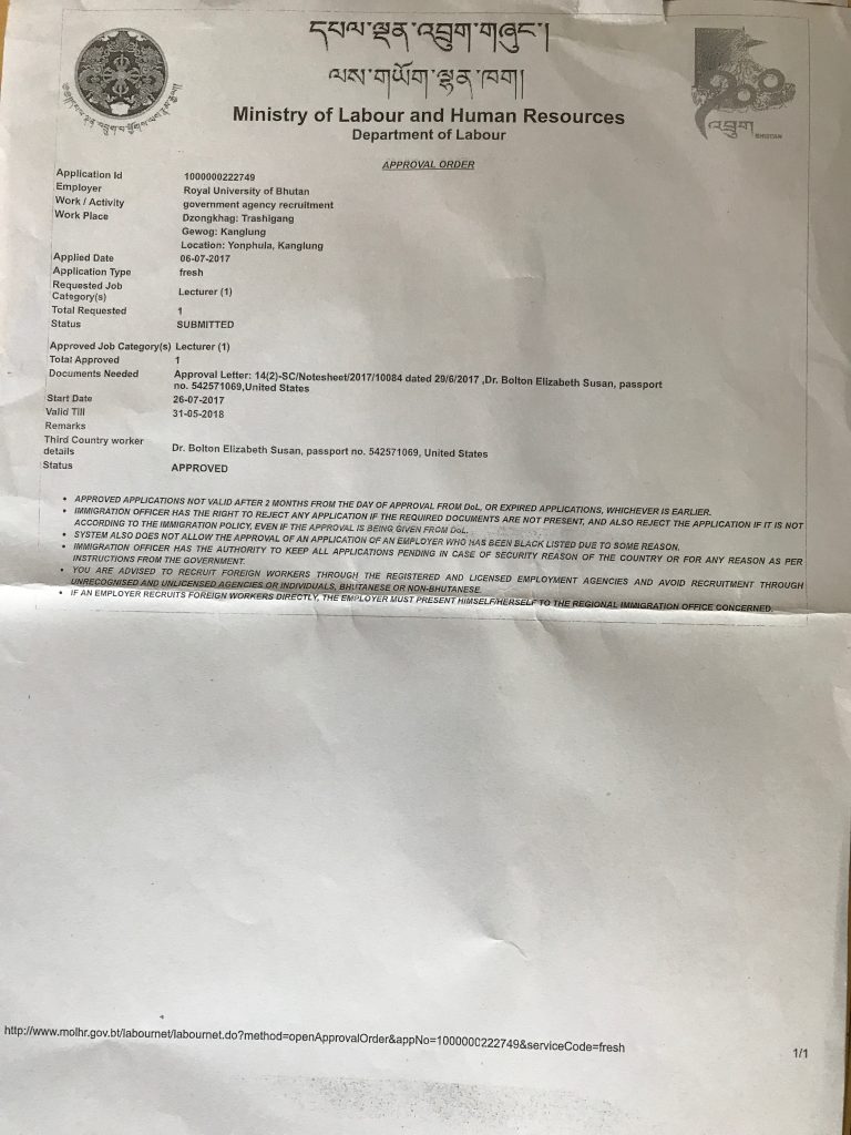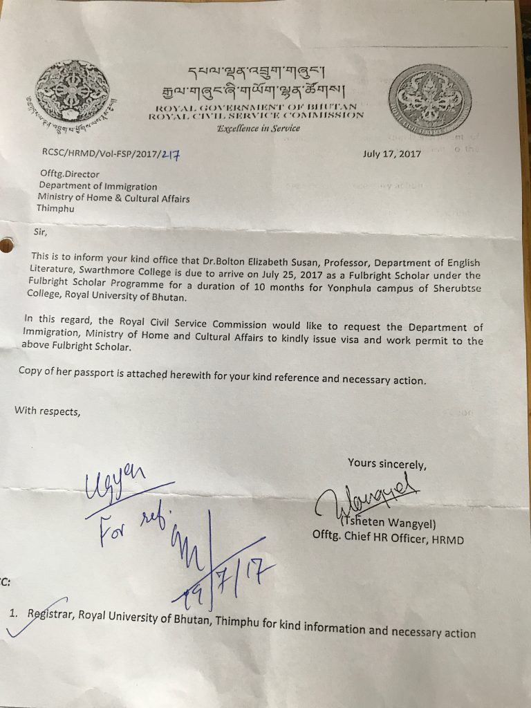 We also talk about the possibility of Zoë assisting in the primary school and/or taking classes at Sherubtse. At midday, over lunch, the president calls to say that according to his wife the school has already talked about this and chosen teachers whom Zoë will assist. They just haven’t gotten back to us about this conversation.