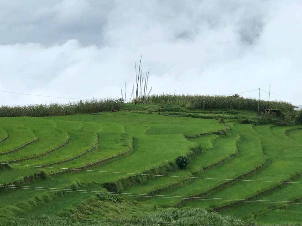 Kuri Zampa is the village marking the bottom of the valley—a descent of 3200 feet from the pass. The air is thick and moist here—as it is even in Mongar, though Mongar is significantly higher up the side of the mountains.
