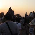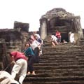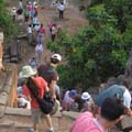 The first day was overcast and cool, so the pictures are a little flat. But day two was sunny and bright, so you'll see blue sky and sharper relief in those pictures. One highlight was climbing to the top level of Angkor Wat—about 60 steps almost straight up. It was scary going up and coming down, but the adrenalin it produced (and the view from the top) was pretty great. It got us ready for a second climb (with hundreds of other tourists) to watch the sunset from Bakheng. Our guide, Kim, wisely counseled us to get down from the temple before darkness fell.