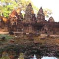 Rather than try to sort out the 400 photos I have taken in the past 2 days, I'm going to post a Web gallery of about 50 of my best pictures. It's difficult to capture the magnitude of the Angkor sites. We visited close to a dozen temples and separate ruins. The famous Angkor Wat, which we saw first, anchors (pun intended) the complex, which extends over many square kilometers. But we also saw Angkor Thom (far larger than Angkor Wat), Prasat Kravan, Bantaey Srei, Ta Prohm, Preah Khan, Bayon, Baphuon, the Elephant Terrace, and the Terrace of the Leper King, and ended the second day at sunset atop the sacred mountain Bakheng.